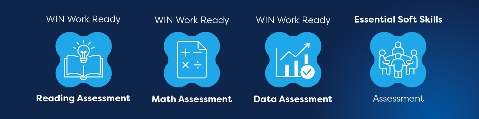 WIN Learning Career Readiness Assessments demonstrate job seekers' preparedness for post-secondary education, vocational training, or immediate employment. These four-hour tests validate and showcase your skills in four foundational areas: math, reading, data, and essential soft skills.
