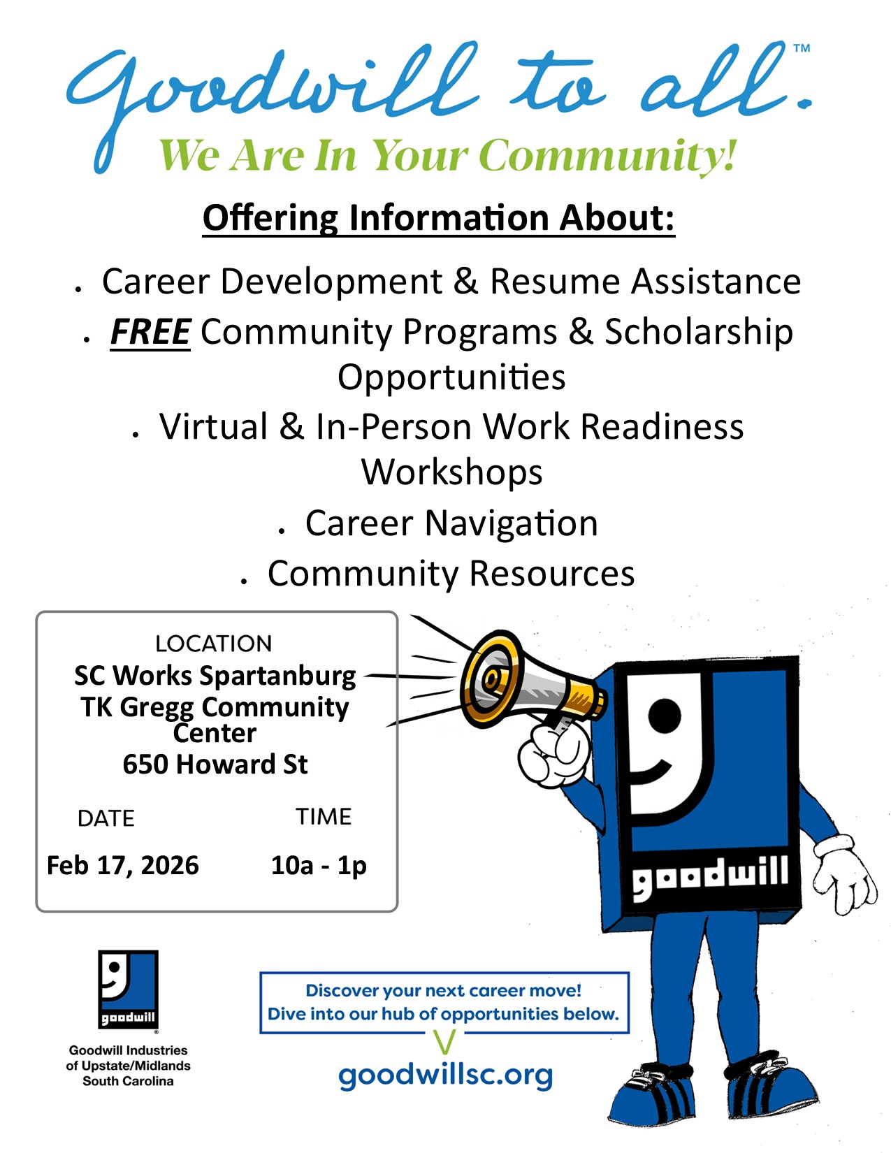 Goodwill's Community Engagement Team Heads to TK Gregg Community Center in Spartanburg