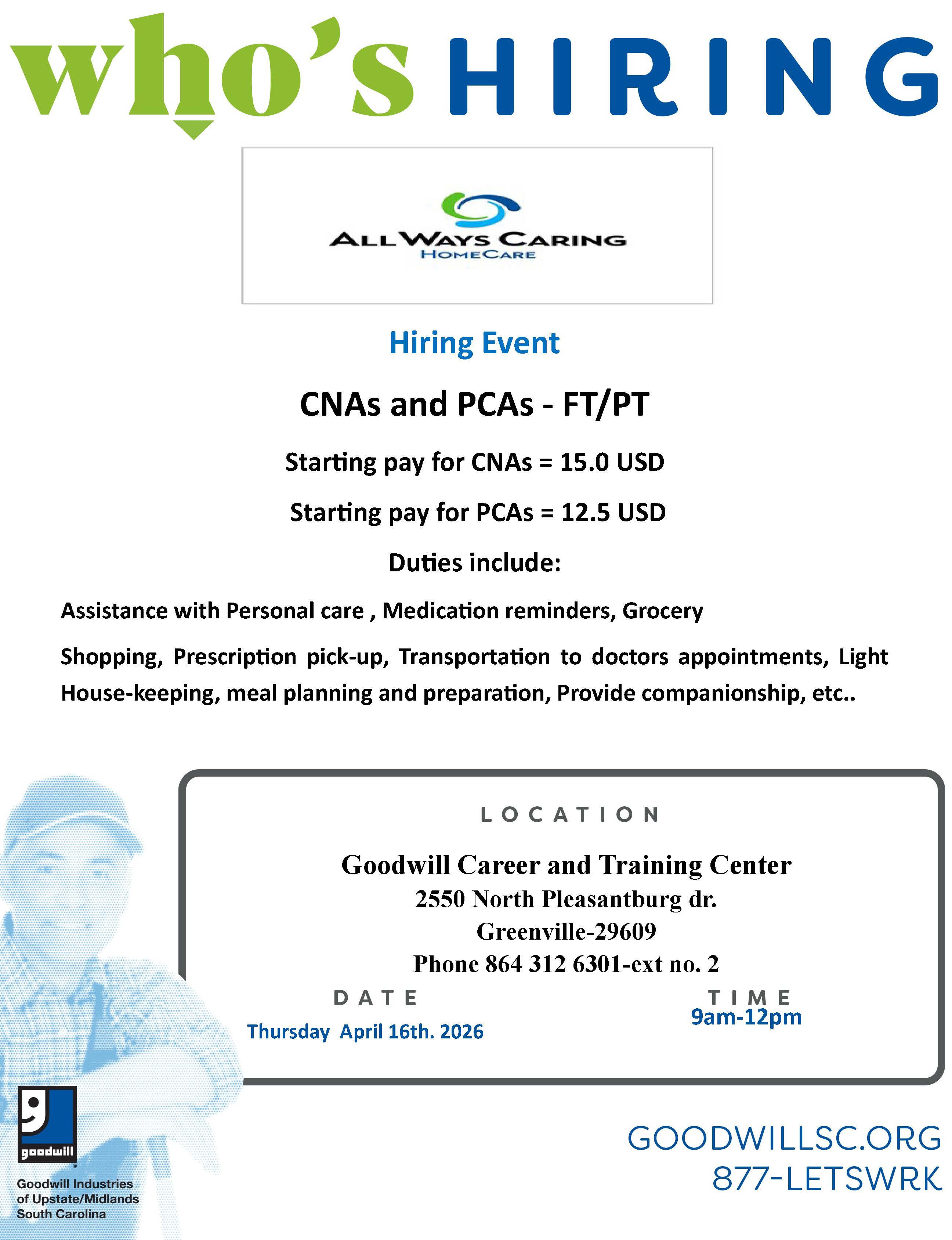 Goodwill Hosts Hiring Event for All Ways Caring in Greenville