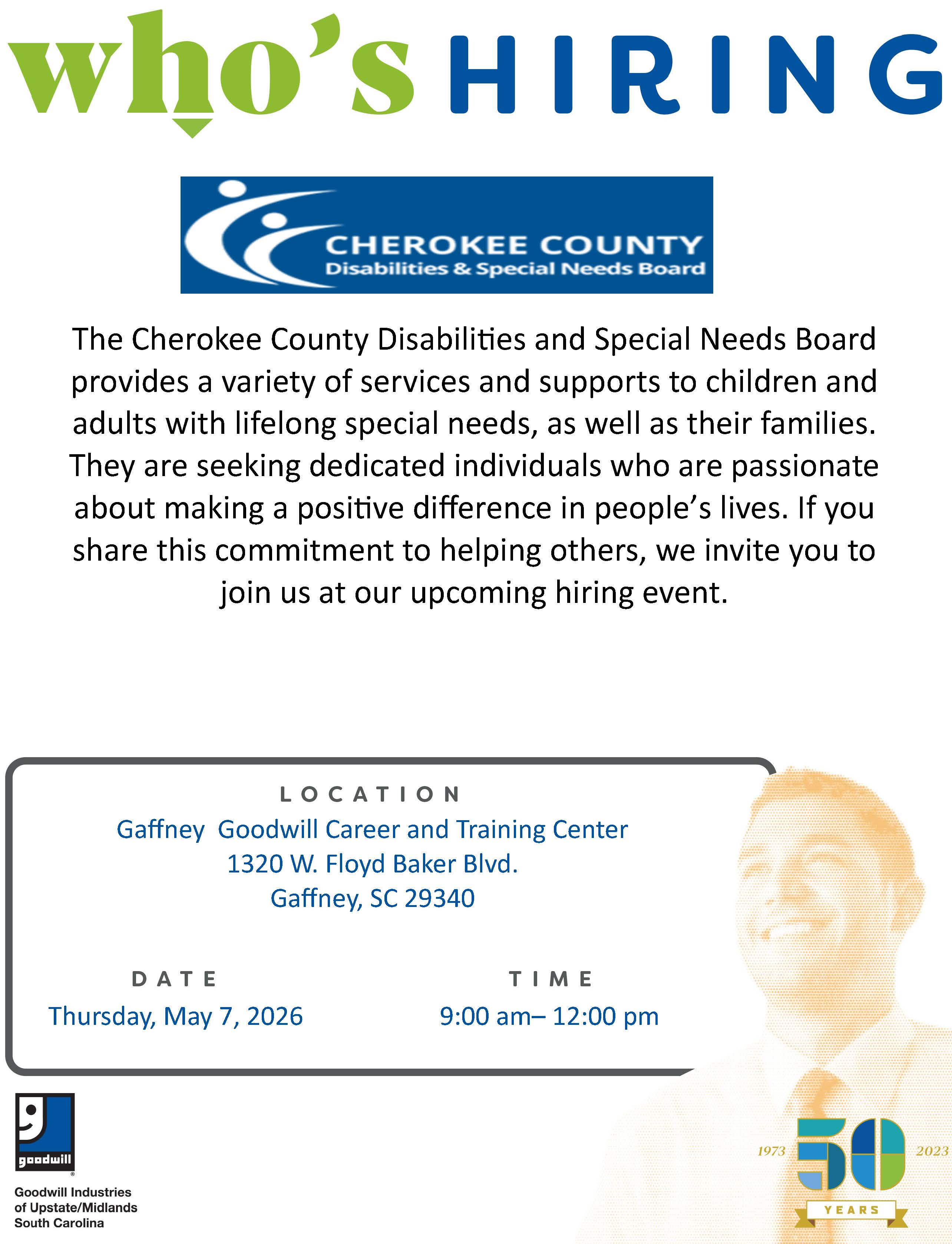 Goodwill Hosts Hiring Event for Cherokee County Disabilities & Needs Board in Gaffney