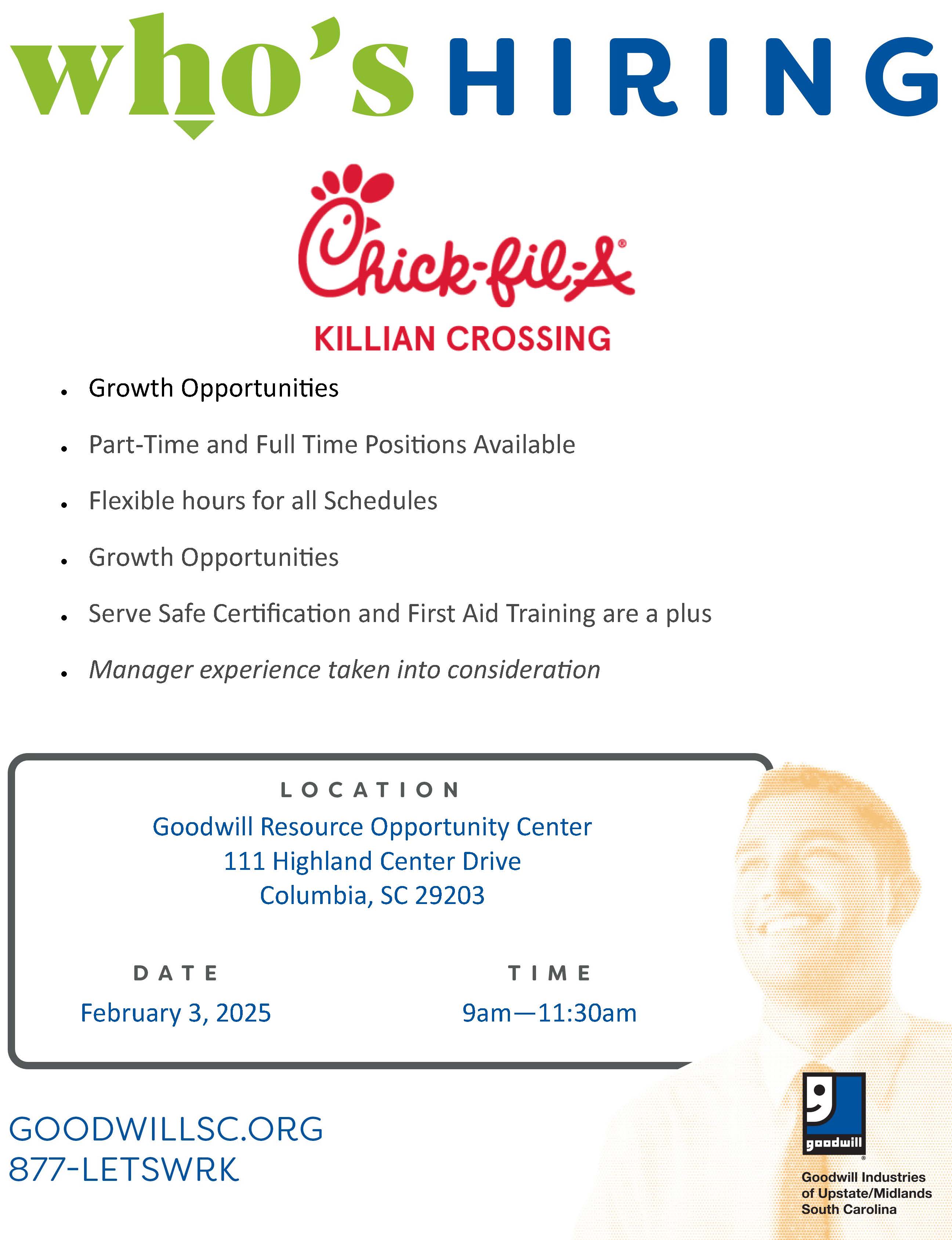 Goodwill Hosts Hiring Event for Chick-fil-A Killian Crossing in Columbia