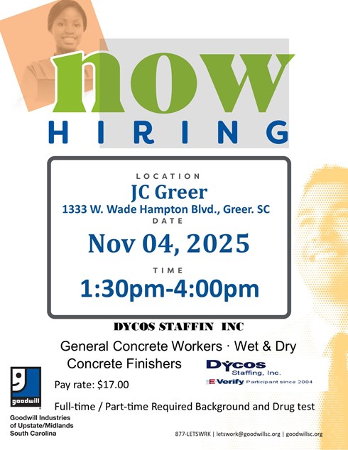 Goodwill Hosts Hiring Event for Dycos Staffing in Greer