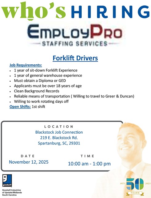 Goodwill Hosts Hiring Event for EmployPro in Spartanburg