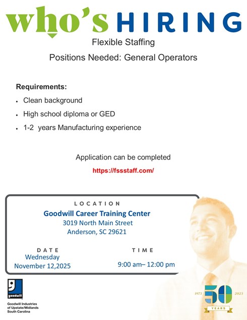 Goodwill Hosts Hiring Event for Flexible Staffing in Anderson