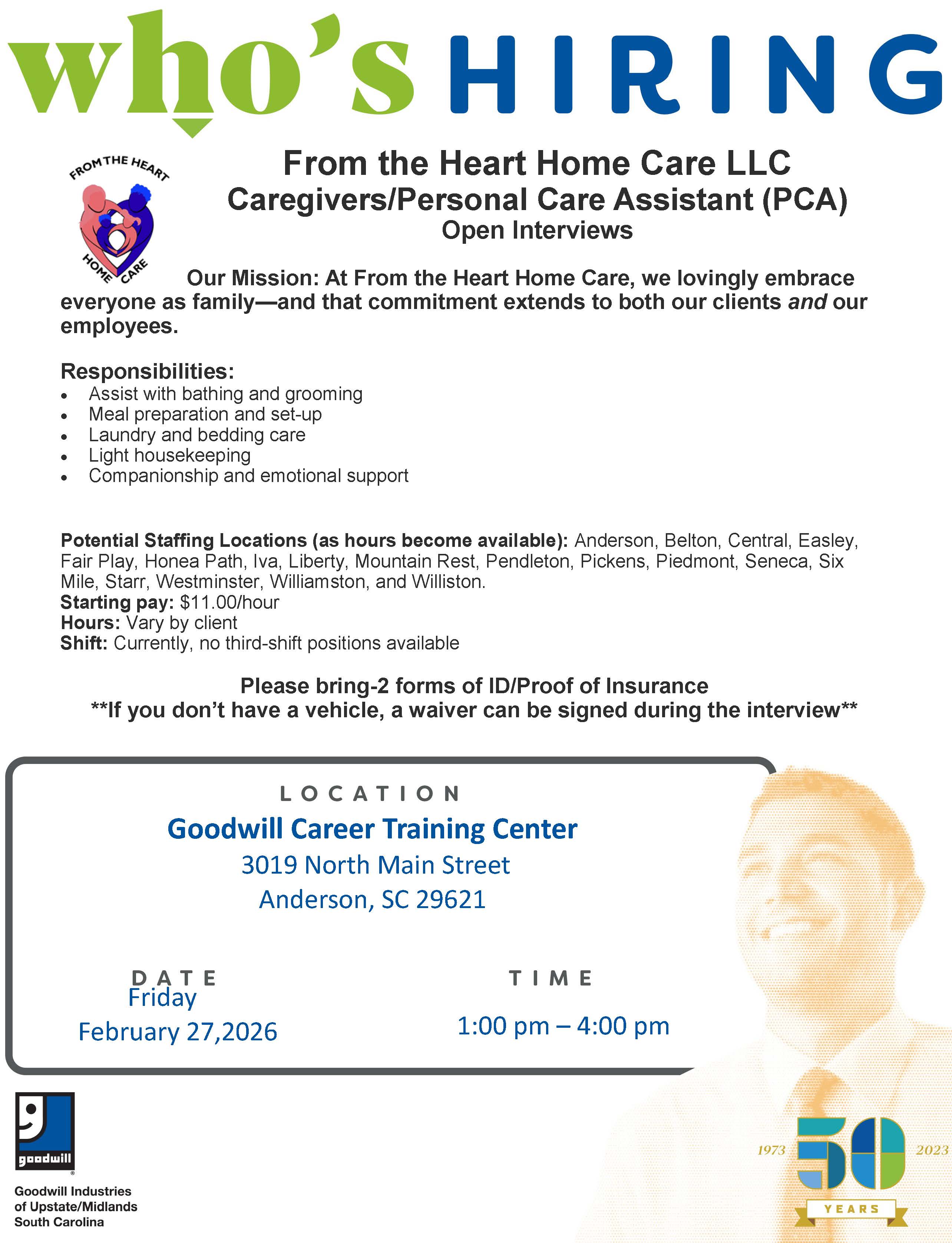 Goodwill Hosts Hiring Event for From the Heart Home Care in Anderson