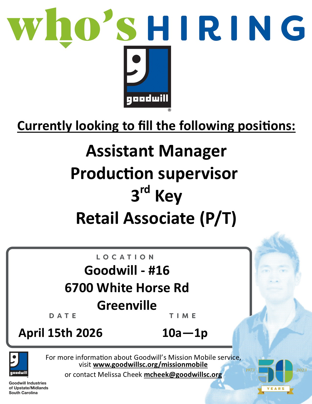 Goodwill is HIRING on White Horse Road in Greenville