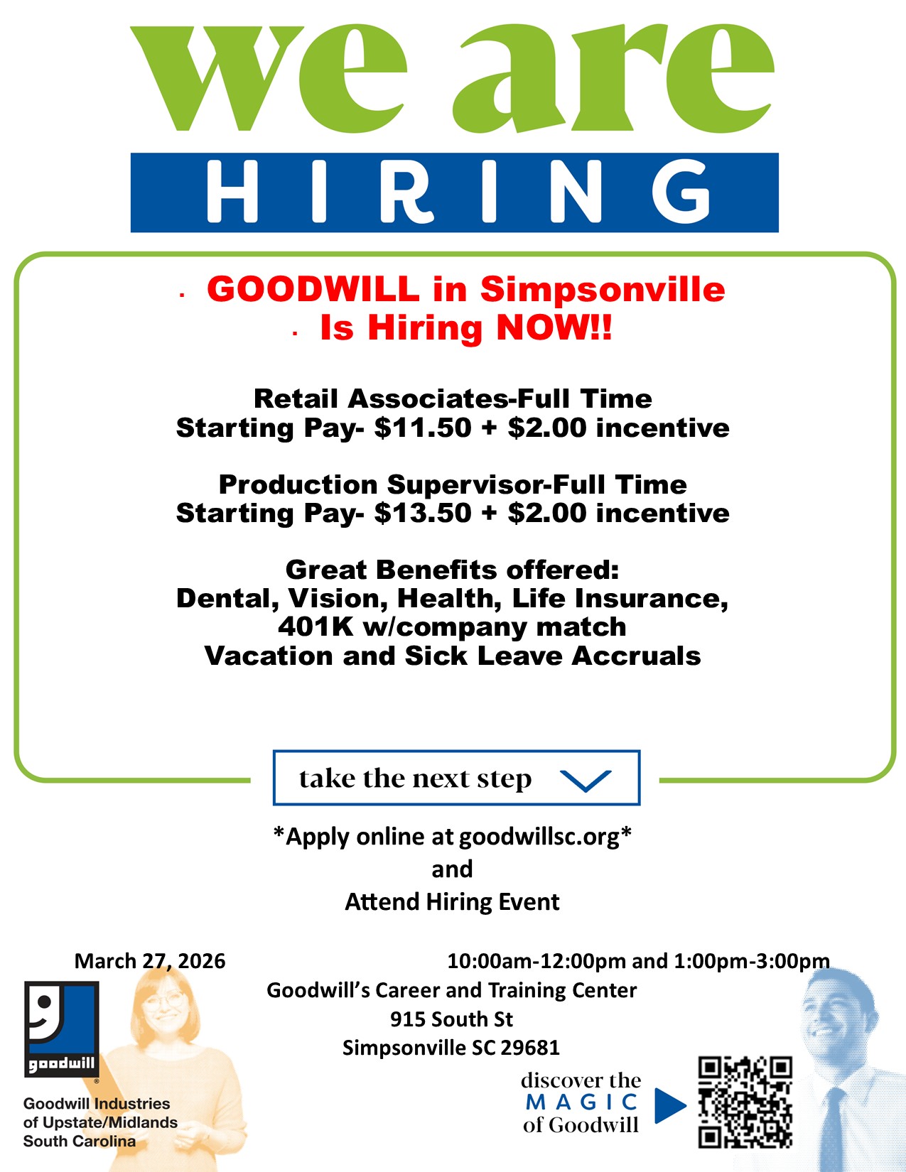 Goodwill is HIRING IN SIMPSONVILLE!
