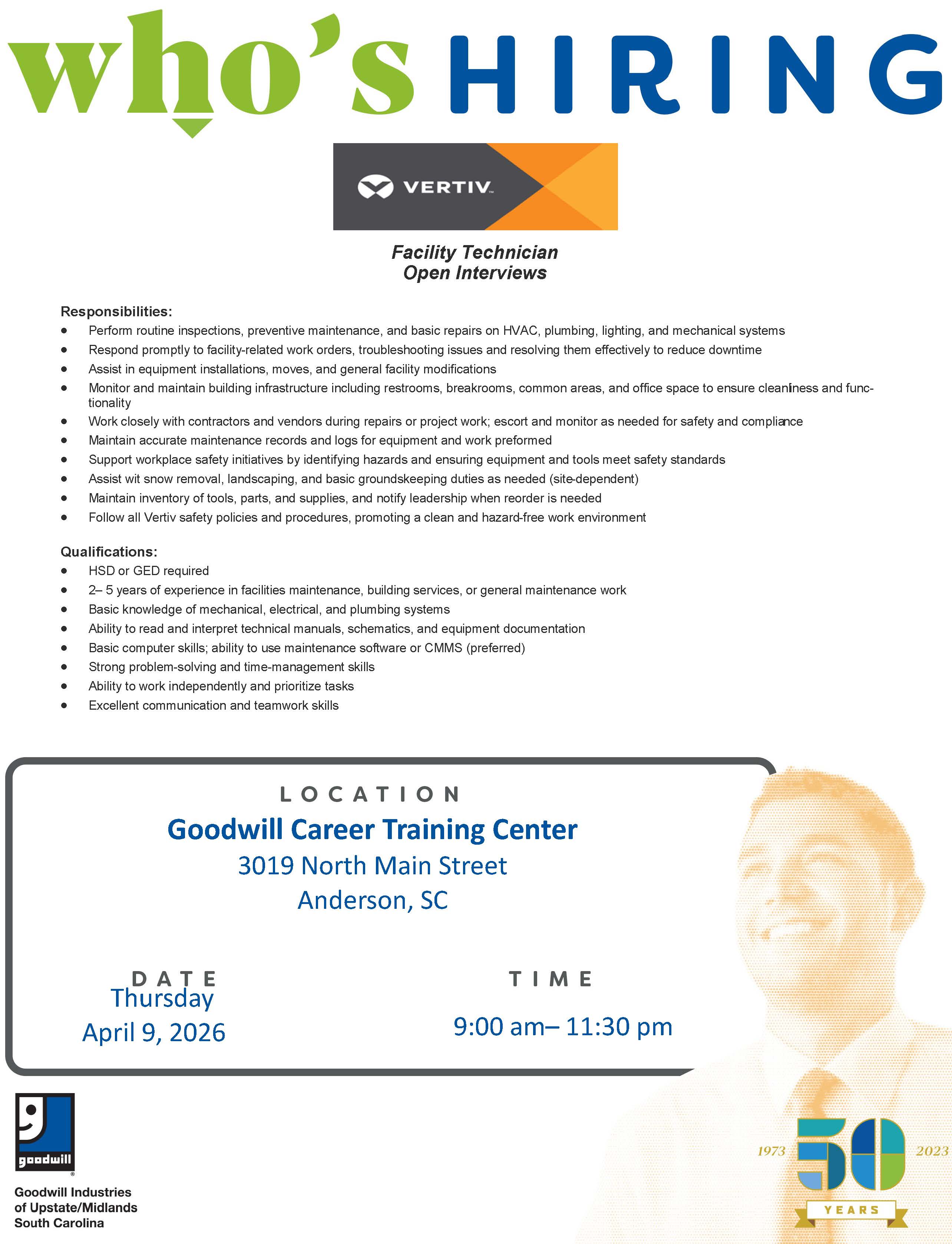 Goodwill Hosts Hiring Event for VERTIV in Anderson