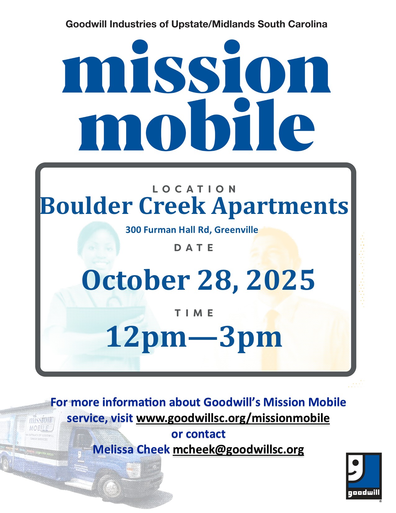 Mission Mobile Rolls to Boulder Creek Apartments for Community Event in Greenville