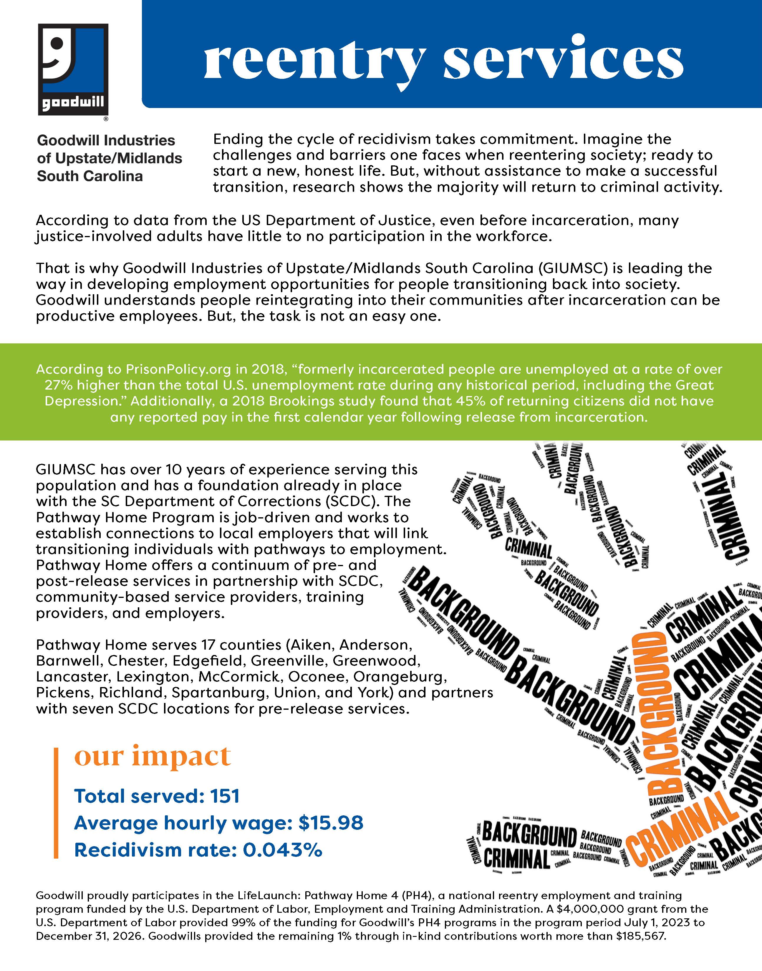South Carolina currently boasts the lowest recidivism rate in the country according to the South Carolina Department of Corrections. However, GIUMSC leadership emphasizes that these outcomes are the result of intentional, collaborative efforts. “Successful reentry doesn’t happen by accident,” said Monique McDaniels, Goodwill Vice President of Community and Workforce Development. “It requires a dedicated ecosystem of support, education, and employer engagement to ensure that every individual has a clear path to professional success and personal stability.”